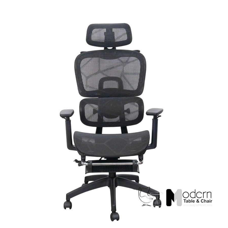 Tính năng: Ghế xoay nâng hạ, ngả lưng gác chân, có móc treo áo, điều chỉnh tựa đầu – lưng – tay – nệm ngồi