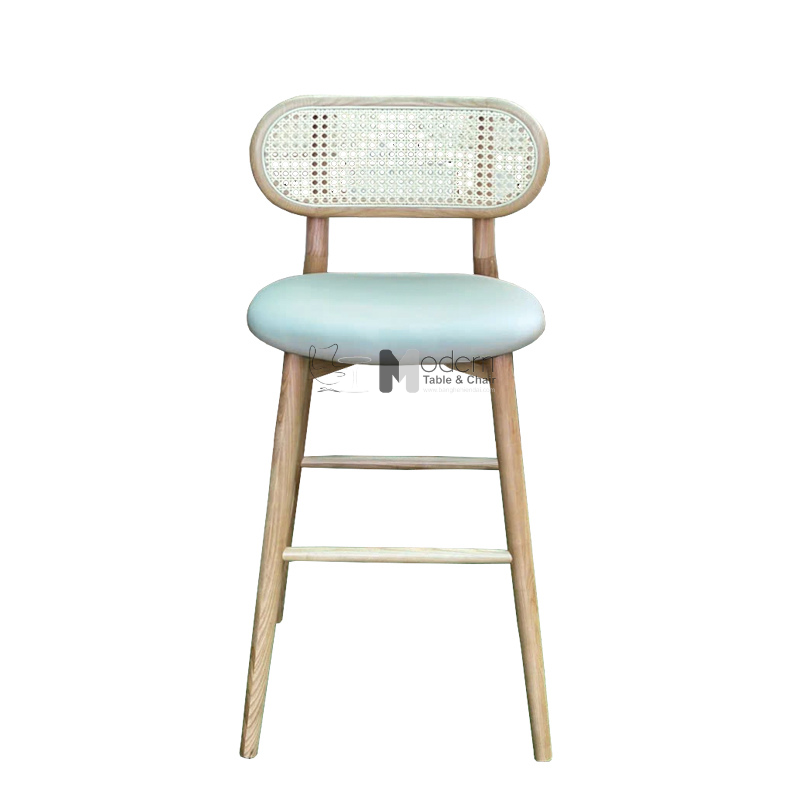 Ghế đảo bếp khung gỗ ash cao 75 cm nệm bọc tựa lưng mây đan CB DECO-75P