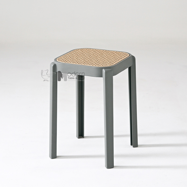 Ghế đôn nhựa đúc nệm giả mây xếp chồng nhỏ gọn.