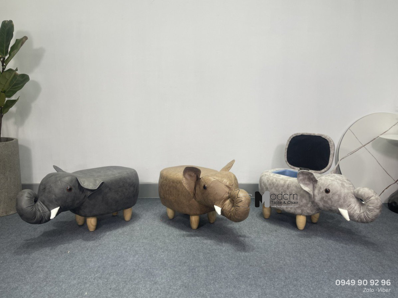 Ghế đôn trang trí hình voi con nệm bọc vải giả da VOICON - F