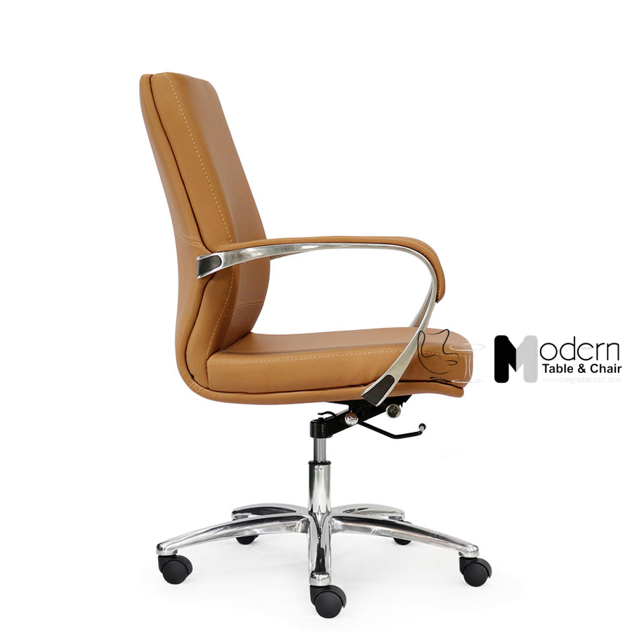 Chiếc ghế mang kiểu dáng thanh lịch, kết hợp ghế lưng trung với phần nệm dày tạo nên sự cân bằng giữa thẩm mỹ và công năng. Đây là mẫu ghế dễ phối với nhiều phong cách nội thất, từ phòng làm việc cá nhân đến văn phòng doanh nghiệp.