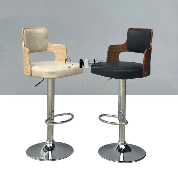 - Thiết kế hiện đại: Lưng ghế được thiết kế liền mạch với điểm tựa tay và lưng tiện lợi. Lưng làm từ gỗ nhưng thoáng mát không bị bí bách nhờ tạo hình thoáng phần lưng. Chân ghế tăng giảm tối đa 81cm là lựa chọn thích hợp với những mẫu bàn bar cao trên 1m1. Ghế có thiết kế mới lạ kết hợp với chất liệu làm cho ghế trở nên chắc chắn và hiện đại.