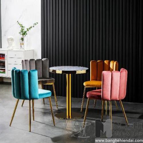 Ghế tiếp khách spa nệm nhung chân mạ màu vàng CC3006-B-F