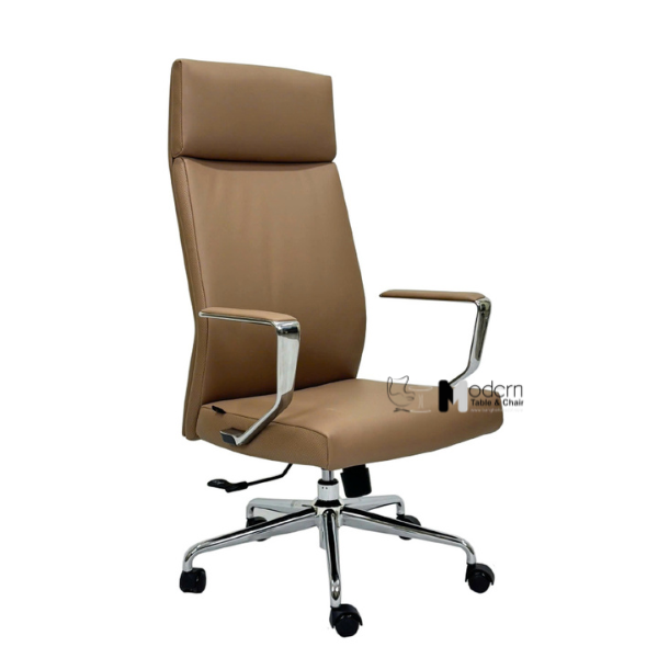 - Chất liệu: Nệm PU, tay và chân ghế thép mạ chrome bóng.