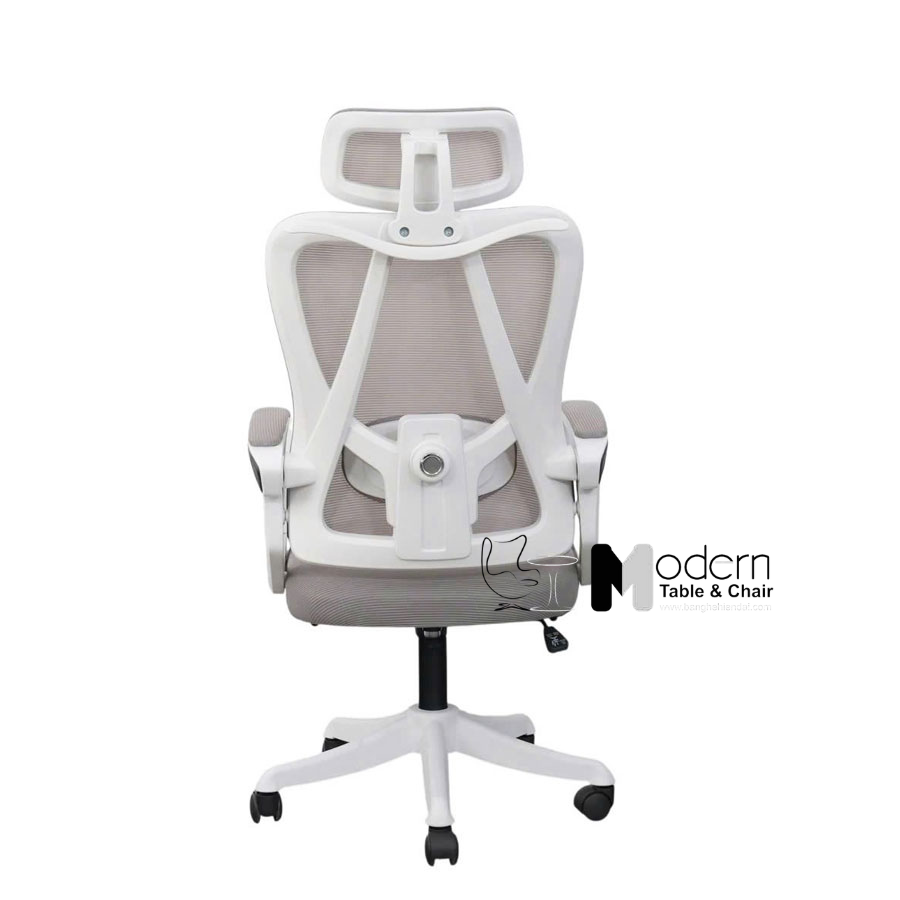 Phần ghế lưng lưới kết hợp nệm vải màu xám mềm mại, giúp nâng đỡ cơ thể và tạo cảm giác thoải mái trong suốt nhiều giờ làm việc. Lưng ghế cao vừa vặn, phù hợp với tư thế ngồi chuẩn của một chiếc ghế làm việc chuyên dụng. Dù là những ngày phải tập trung cao độ, ghế vẫn mang lại sự dễ chịu, hạn chế cảm giác mệt mỏi.