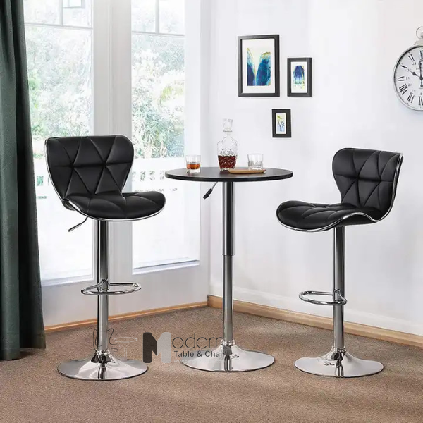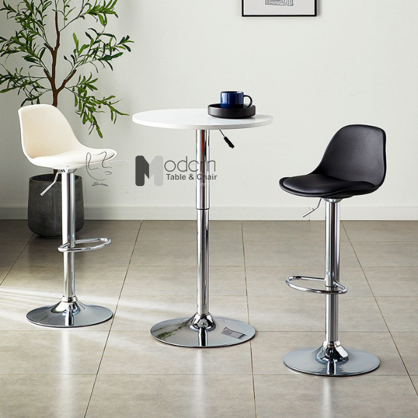 Mặt gỗ sơn chống thấm tốt bàn tròn kích thước chuẩn cho không gian, phối hợp đi kèm là chân mạ chrome sáng bóng. Ngoài ra, bàn có thể điều chỉnh độ cao dễ dàng bố trí cho mọi không gian bài trí.