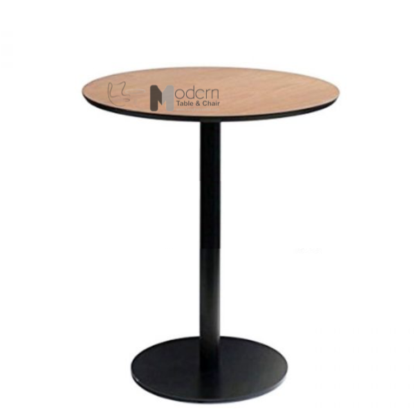 Bàn tiếp khách mặt gỗ tròn chân trụ sắt sơn mặt gỗ