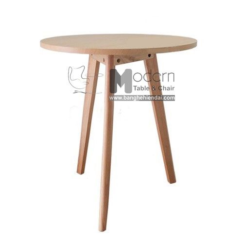 Bàn mặt gỗ MDF phủ PVC vân gỗ, gia công sắc nét, chân gỗ tự nhiên chắc chắn, rất phù hợp cho cafe hay nhà hàng fastfood. Với thiết kế 3 chân gọng kiềm tạo một thế đứng vững chắc cho bàn.
