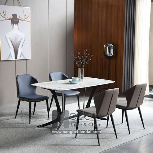 Bộ bàn ghế ăn chữ nhật đá phiến 1m6 TN Ronto Eco 4A-P hiện đại